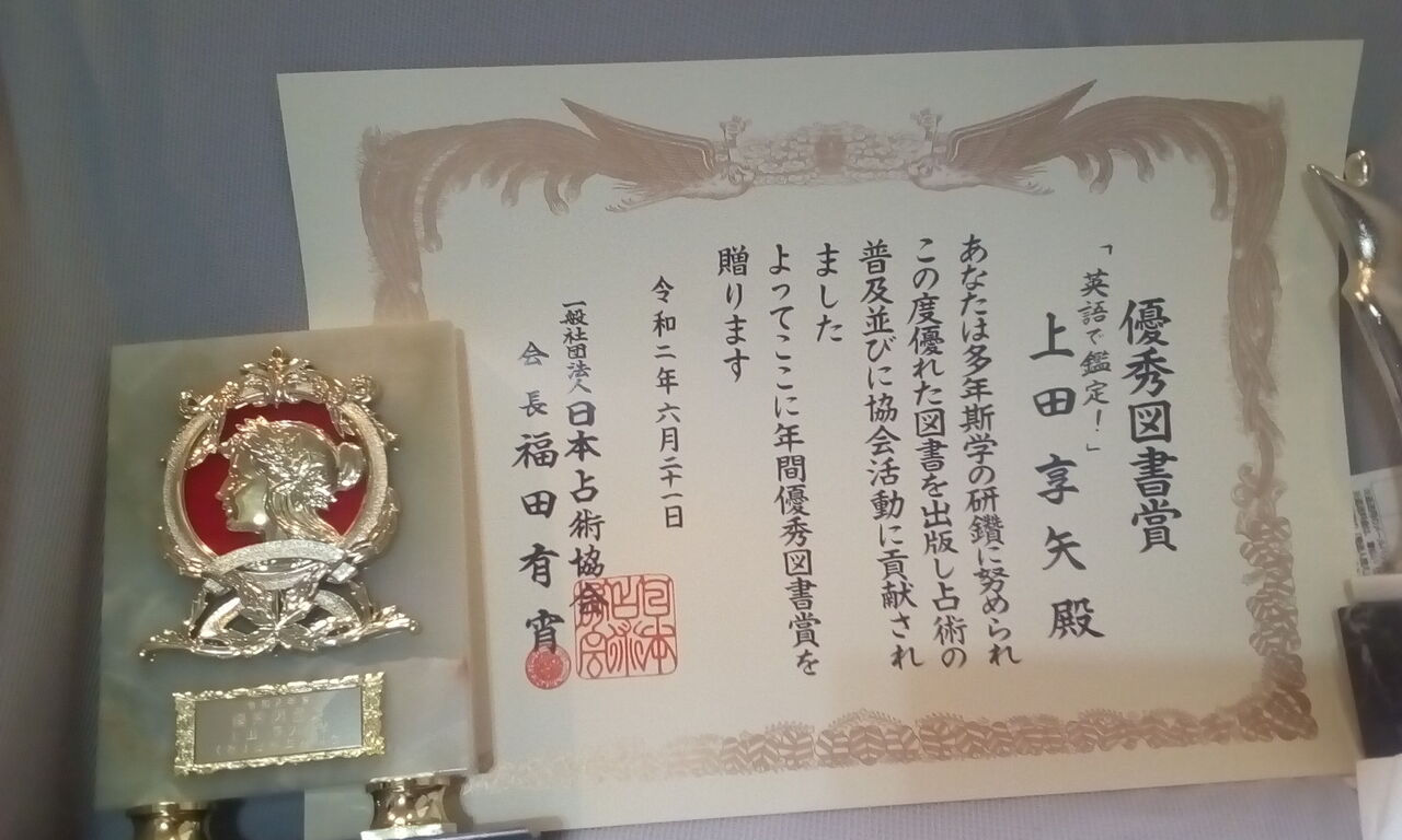 日本占術協会より、功労賞と優秀図書賞をいただきました。